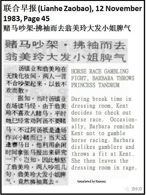 据说,当时住在翁美玲楼上的邻居,正是因为男方出轨导致婚姻亮起红灯的郑少秋和沈殿霞(详见万小刀公众号往期精选:《香港『古装第一帅』郑少秋情债》)。