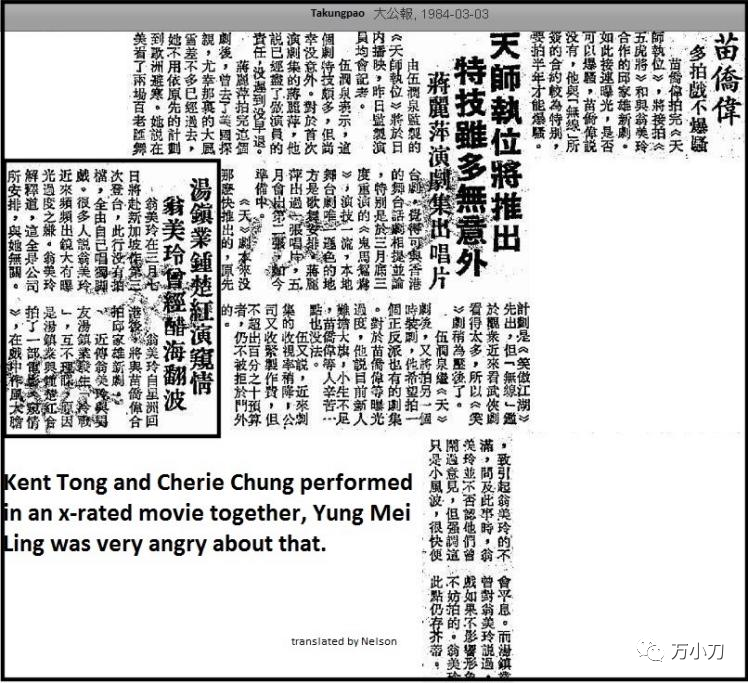 反正经此一闹,翁美玲心情肯定不咋地。心情不好的翁美玲,却没有等到汤镇业的安慰和陪伴,等来的却是他和钟楚红拍摄的三级片《窥情》。