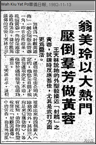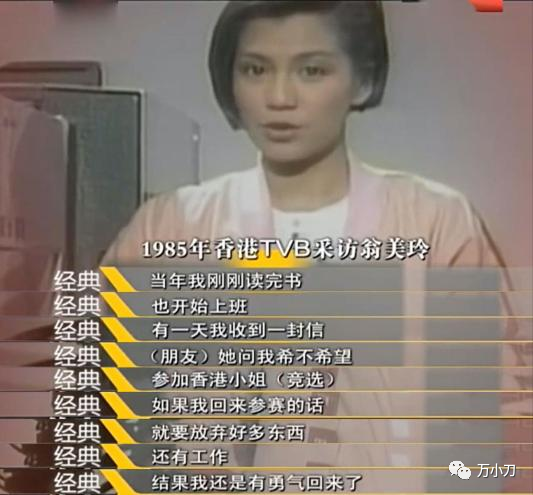 1982年3月,23岁的翁美玲从英国回到香港,参加“港姐”竞选,不料,学历出众、对答如流的她,却因身高劣势,只获得第8名。